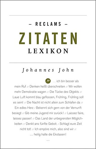 "Alles Gescheite ist schon gedacht worden; man muss nur versuchen, es noch einmal zu denken" Goethes Maxime steht am Eingang dieses bewährten Nachschlagewerks für alle literarisch Interessierten, die zur rechten Zeit das richtige Zitat suchen und finden. Über 5000 Zitate wurden nach signifikanten Ordnungswörtern alphabetisch zusammengestellt, ein ausführliches Autorenregister verweist auf alle im Buch aufgeführten Zitate der einzelnen Autoren.