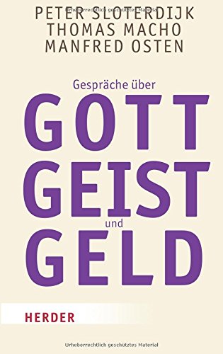 / Peter Sloterdijk und Thomas Macho im Gespräch mit Manfred Osten über Gott, Geist und Geld, über die Hölle als "Verfassungsorgan", Gottvertrauen und Geldvertrauen, über Kapitalismus als Religion, über den Zusammenhang von Geist und Geld. Der bekannteste Philosoph Deutschlands und Thomas Macho, Berliner Kulturwissenschaftler und Mitglied der Europäischen Akademie der Wissenschaften und Künste, eröffnen neue Perspektiven über Gott, Geist und Geld abseits der vorgedachten Pfade.